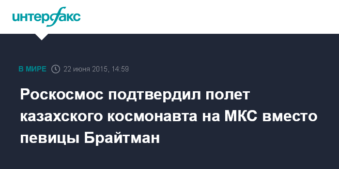 Роскосмос подтвердил полет казахского космонавта на МКС вместо певицы Брайтман