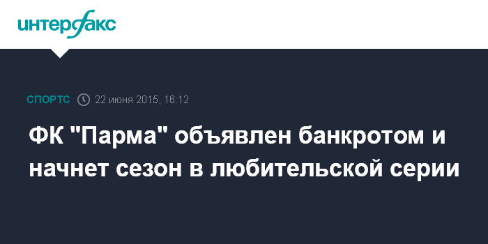 Москва. 22 июня. INTERFAX.RU - Футбольный клуб "Парма" (Италия) на своем официальном сайте официально объявил о банкротстве.