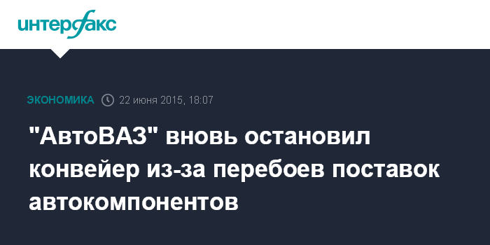 Москва. 22 июня. INTERFAX.RU - ОАО "АвтоВАЗ" приостановило производство из-за проблем с поставками автокомпонентов, сообщил "Интерфаксу" представитель компании.