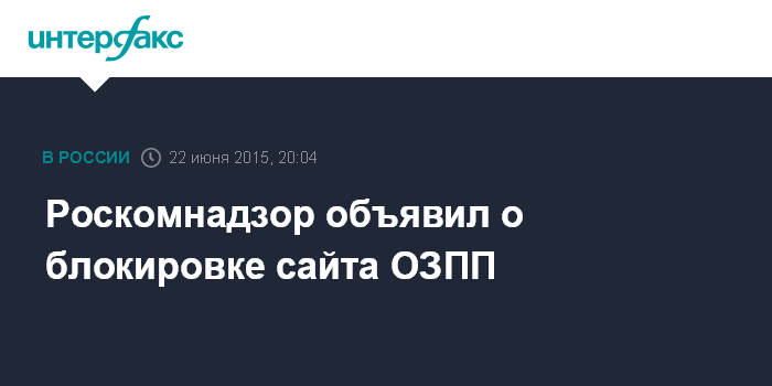 "К нам поступило требование Генпрокуратуры в отношении сайта ozpp.ru. В полном соответствии с требованием 398-го Федерального закона сайт направлен в выгрузку операторам связи. Производится его блокировка на территории Российской Федерации", - сообщил "Интерфаксу" пресс-секретарь Роскомнадзора Вадим Ампелонский.