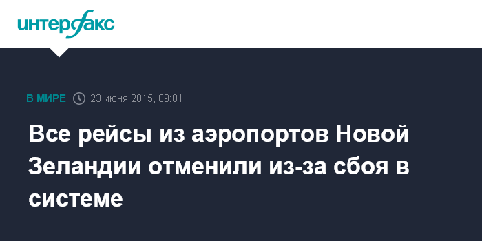 Москва. 23 июня. INTERFAX.RU - Все рейсы из аэропортов Новой Зеландии были отложены в ночь на вторник из-за сбоя в системе управления полетами, сообщает BBC.