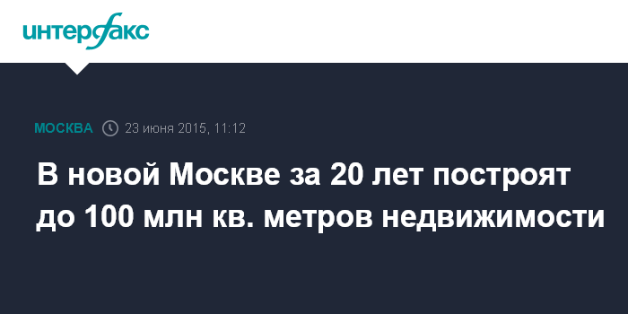 В новой Москве за 20 лет построят до 100 млн кв. метров недвижимости