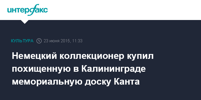Москва. 23 июня. INTERFAX.RU - Гражданин Германии Клаус Кокс приобрел через интернет памятную доску в честь философа Иммануила Канта, которая была похищена в Калининграде со стены Королевского замка.
