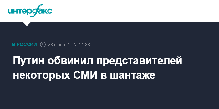 Москва. 23 июня. INTERFAX.RU - Президент РФ Владимир Путин призвал разбираться не только со случаями подкупа чиновников, но и с шантажом, который применяют некоторые СМИ.