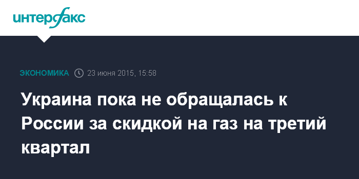 Москва. 23 июня. INTERFAX.RU – Украина пока не обращалась в правительство РФ для получения скидки на газ в третьем квартале, сообщил журналистам во вторник министр энергетики РФ Александр Новак.