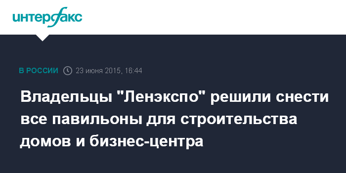 Владельцы "Ленэкспо" решили снести все павильоны для строительства домов и бизнес-центра