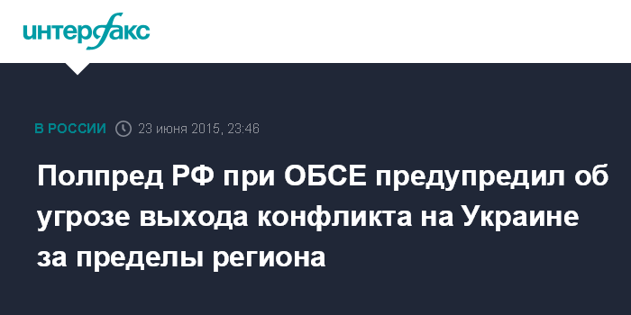 Москва. 23 июня. INTERFAX.RU - Постоянный представитель РФ при ОБСЕ Андрей Келин считает, что если реализация минских соглашений будет осуществляться так же, как в настоящее время, то конфликт на Украине угрожает выйти за рамки регионального.