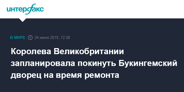 Москва. 24 июня. INTERFAX.RU - Королеве Великобритании Елизавете II и ее супругу герцогу Эдинбургскому, возможно, придется временно уехать из Букингемского дворца, пишет в среду The Daily Telegraph.