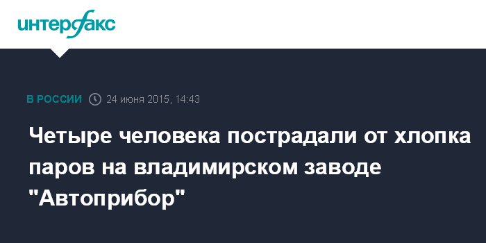 Москва. 24 июня. INTERFAX.RU - В результате сильного хлопка паров в лакокрасочном цехе владимирского ОАО "Автоприбор" пострадали четыре человека, сообщила пресс-служба ГУ МЧС России по Владимирской области в среду.