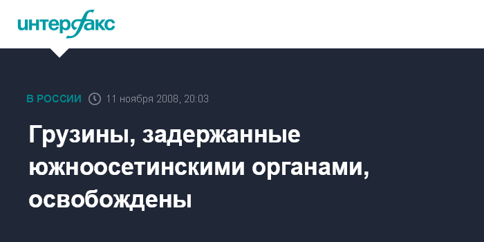 Москва. 11 ноября. INTERFAX.RU - Югоосетинская сторона во вторник вечером освободила группу из шести граждан Грузии, задержанных 11 дней назад, сообщает грузинское общественное ТВ.