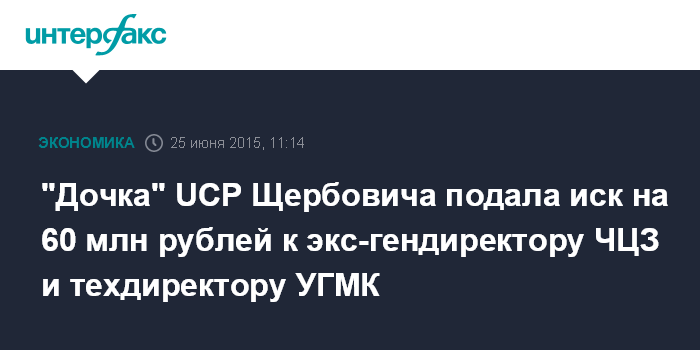 Исковое заявление было подано 18 июня текущего года. "Интерфакс" пока не располагает комментариями ЧЦЗ и УГМК.