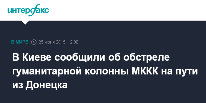 Москва. 25 июня. INTERFAX.RU - Служба безопасности Украины заявила, что ополченцы обстреляли из подствольных гранатометов и стрелкового оружия гуманитарный конвой Красного Креста в районе блокпоста у села Березово Волновахского района Донецкой области.