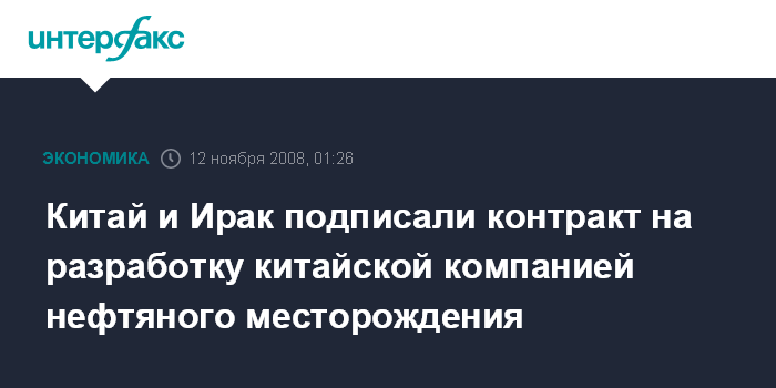 На минувшей неделе Ирак и КНР заключили соглашение, предоставляющее Китайской национальной нефтегазовой корпорации право ведения разведки и добычи нефти в провинции Васит юго-восточнее Багдада (месторождение "Ахдаб").