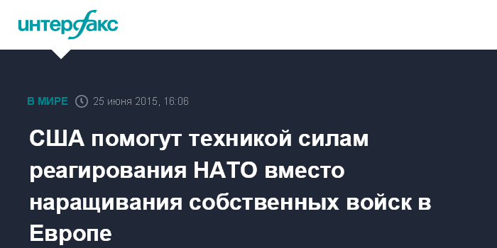 США помогут техникой силам реагирования НАТО вместо наращивания собственных войск в Европе