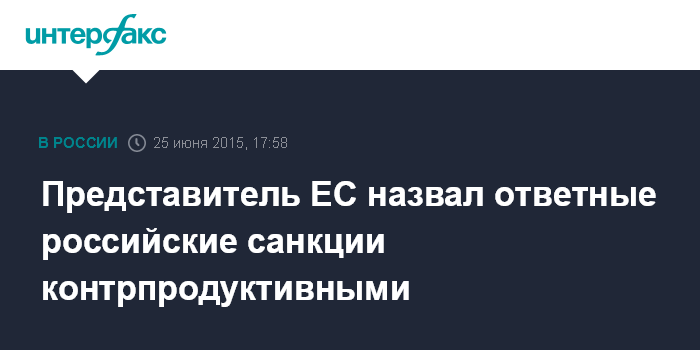 Москва. 25 июня. INTERFAX.RU - Введенные РФ ответные санкции в отношении стран Запада контрпродуктивны и наносят сильный удар по российскому рынку и по потребителям, заявила в четверг "Интерфаксу" представитель главы европейской дипломатии Майя Коцьянчич.