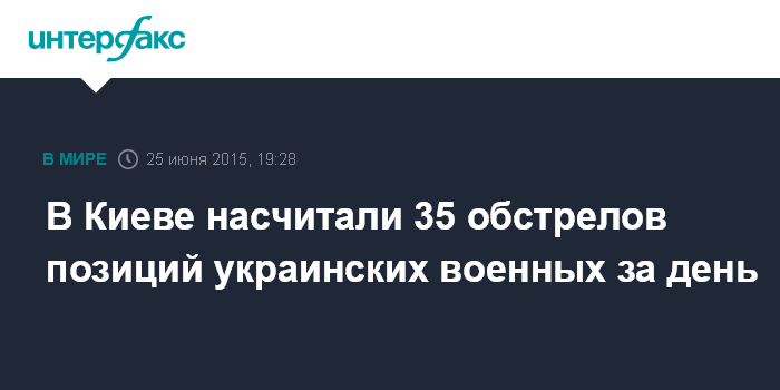 Москва. 25 июня. INTERFAX.RU - За четверг позиции украинских военных, участвующих в войсковой операции на юго-востоке страны, 35 раз подвергались обстрелу, сообщили в пресс-центре операции в вечерней сводке на своей странице в фейсбуке.