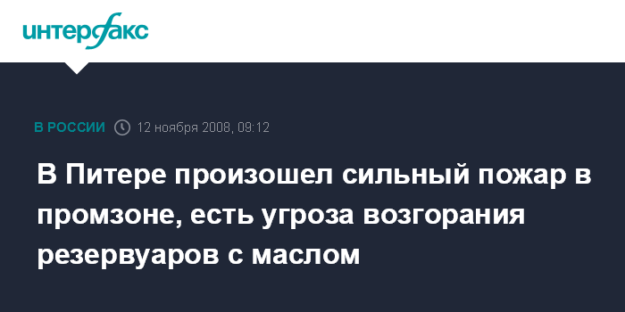 В Питере произошел сильный пожар в промзоне, есть угроза возгорания резервуаров с маслом