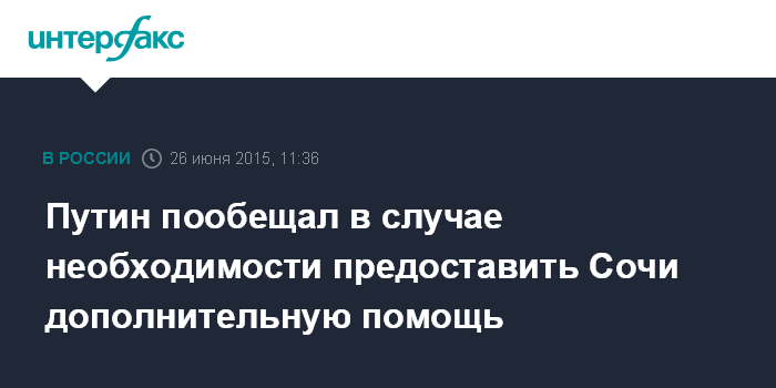 Путин пообещал в случае необходимости предоставить Сочи дополнительную помощь