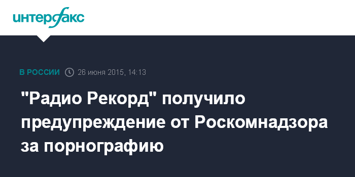 Москва. 26 июня. INTERFAX.RU - Роскомнадзор вынес предупреждение станции "Радио Рекорд" за пропаганду порнографии, сообщает пресс-служба ведомства в пятницу.