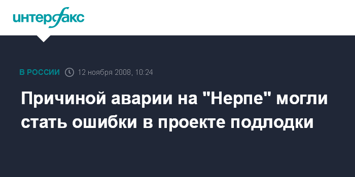 Хабаровск.12 ноября. INTERFAX.RU - Несанкционированное срабатывание системы пожаротушения на атомной подводной лодке "Нерпа", которое привело к гибели 20 человек, могло стать следствием ошибки в проекте, заявил исполняющий обязанности генерального директора Амурского судостроительного завода (АСЗ) Геннадий Васильев.