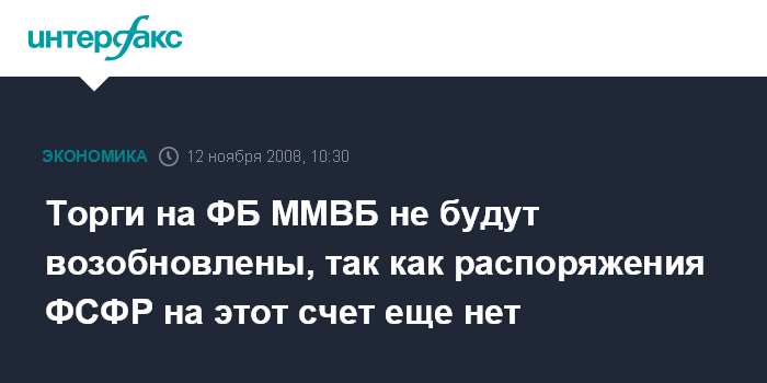 Торги на ФБ ММВБ не будут возобновлены, так как распоряжения ФСФР на этот счет еще нет