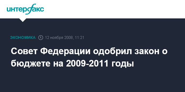 Москва. 12 ноября. INTERFAX.RU - Закон о бюджете РФ на 2009 г. и плановый период 2010-2011 гг. одобрен в среду Советом Федерации.
