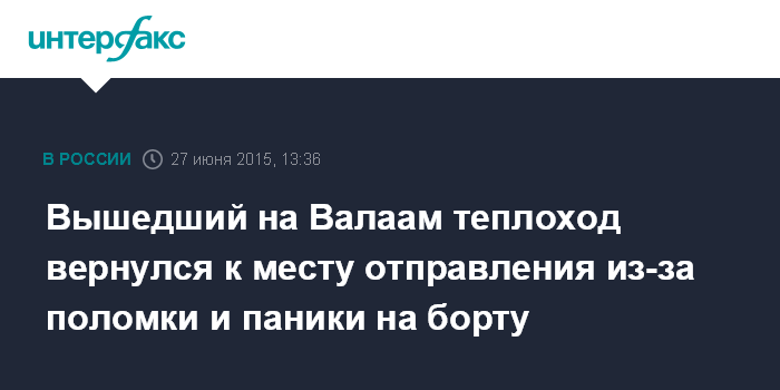 В сообщении отмечается, что в дежурную часть петербургского линейного отдела МВД РФ на водном транспорте поступила информация о том, что на прогулочном теплоходе, следовавшем по маршруту Петербург - Валаам - Петербург, выявлена техническая неисправность, а среди пассажиров возникла паника.
