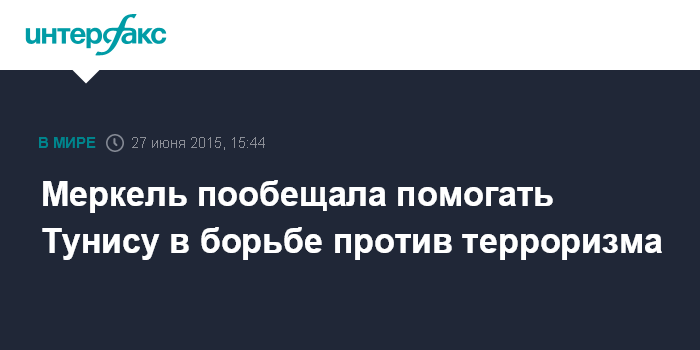 Москва. 27 июня. INTERFAX.RU - Канцлер ФРГ Ангела Меркель провела переговоры по телефону с президентом Туниса Беджи Каидом Эссебси, в ходе которых пообещала усилить сотрудничество по борьбе против терроризма, сообщает в субботу агентство Associated Press.