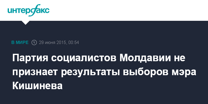 Москва. 29 июня. INTERFAX.RU - Партия социалистов Молдавии (ПСРМ) не признает результаты выборов мэра Кишинева, заявил председатель партии Игорь Додон.