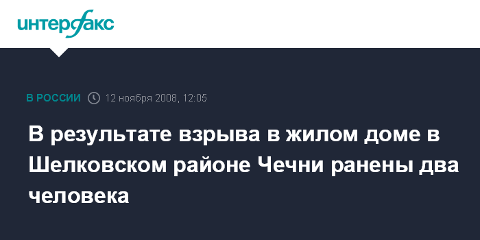 В результате взрыва в жилом доме в Шелковском районе Чечни ранены два человека