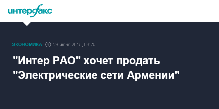 "Интер РАО" хочет продать "Электрические сети Армении"