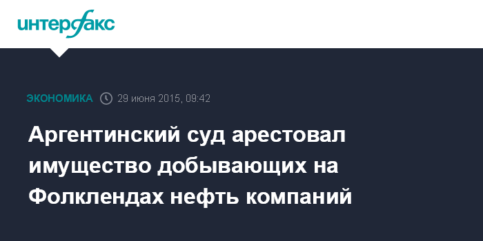 Москва. 29 июня. INTERFAX.RU - Аргентинский суд постановил арестовать счета пяти британских и американских компаний, занимающихся добычей нефти в территориальных водах Фолклендских островов, сообщает BBC.