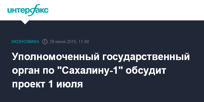 Москва. 29 июня. INTERFAX.RU – Уполномоченный государственный орган (УГО) обсудит реализацию СРП-проекта "Сахалин-1" на заседании 1 июля в Москве, сообщает пресс-служба правительства Сахалинской области.