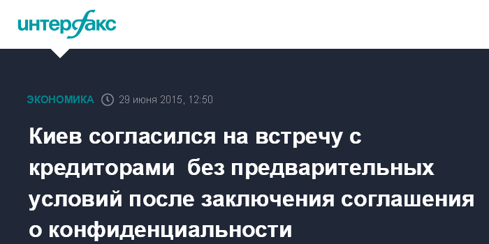 Киев согласился на встречу с кредиторами без предварительных условий после заключения соглашения о конфиденциальности