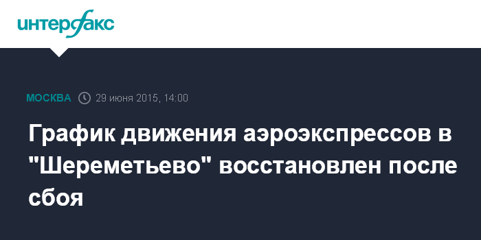 Москва. 29 июня. INTERFAX.RU - График движения аэроэкспрессов, курсирующих между Белорусским вокзалом Москвы и аэропортом "Шереметьево", восстановлен после сбоя на Савеловском направлении.