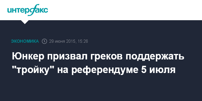 Афины созывают референдум, на котором граждане должны будут проголосовать, принимать или нет условия кредиторов, на 5 июля. Премьер-министр Греции Алексис Ципрас ранее заявил, что он рекомендует соотечественникам в ходе референдума голосовать "против".