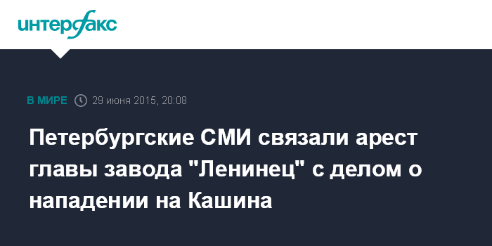 Петербургские СМИ связали арест главы завода "Ленинец" с делом о нападении на Кашина