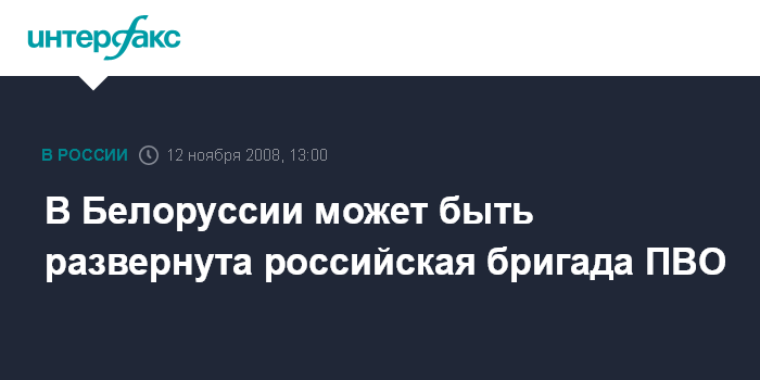 Москва. 12 ноября. INTERFAX.RU - В рамках создания совместной с Белоруссией системы ПВО в республике может быть развернута российская бригада, заявил директор по особым поручениям ФГУП "Рособоронэкспорт" Николай Димидюк журналистам в Москве.