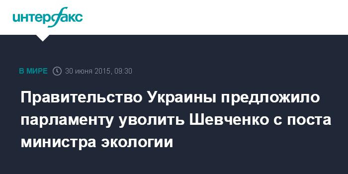 Как сообщалось, кабинет министров на заседании в среду постановил направить в Верховную Раду представление на увольнение Шевченко с должности министра экологии и природных ресурсов.
