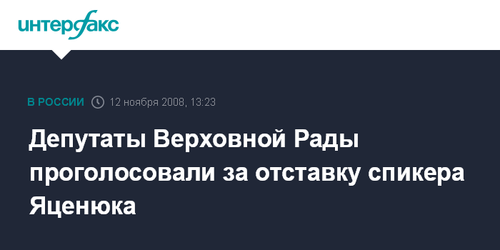 Киев. 12 ноября. INTERFAX.RU - Верховная Рада Украины отозвала спикера Арсения Яценюка с занимаемой должности в соответствии с поданным им заявлением.