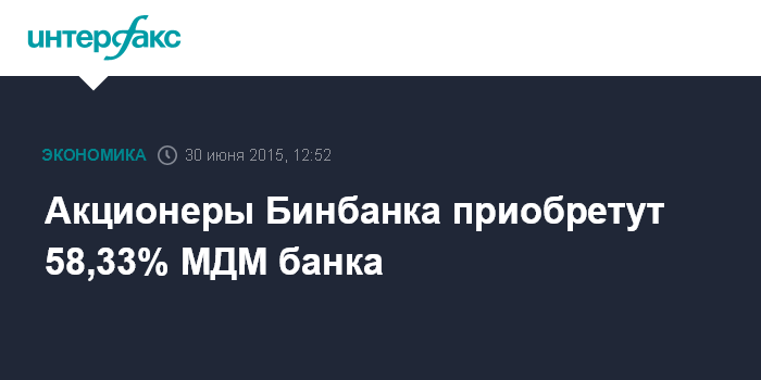 Акционеры Бинбанка приобретут 58,33% МДМ банка