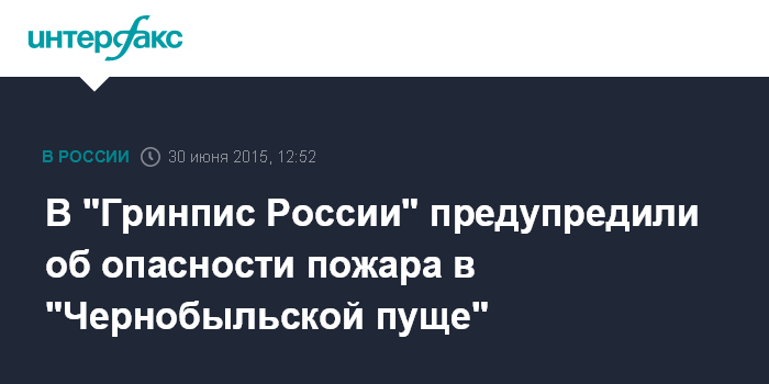 "Торфяные и лесные пожары на территории любых радиационно загрязненных участков - очень неприятная вещь. Потенциальная опасность существует", - сказал "Интерфаксу" во вторник директор по программам "Гринпис России" Иван Блоков.