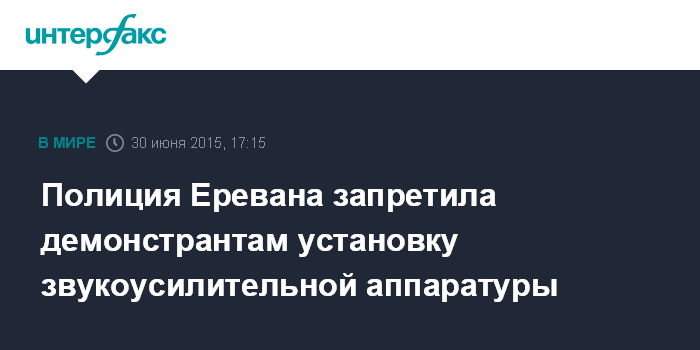 Москва. 30 июня. INTERFAX.RU - Полиция Армении не разрешила участникам акции протеста против подорожания энерготарифов установить динамики на проспекте Баграмяна в центре Еревана.