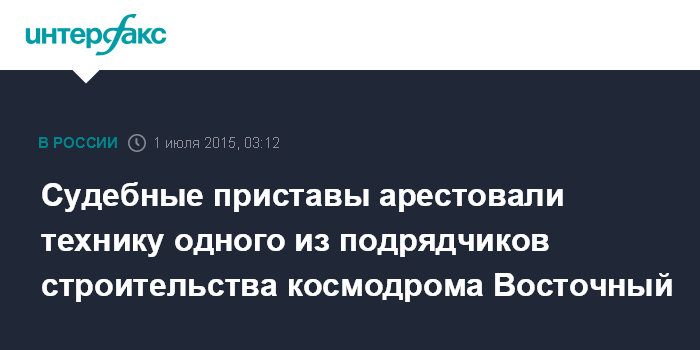 Москва. 1 июля. INTERFAX.RU - Более 10 единиц техники, задействованной на строительстве космодрома Восточный (Амурская область), переданы в счет почти 30 млн рублей долга компании ООО "Системы и сети", сообщает региональное управление ФССП РФ.
