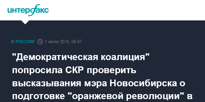 "Демократическая коалиция" попросила СКР проверить высказывания мэра Новосибирска о подготовке "оранжевой революции" в городе