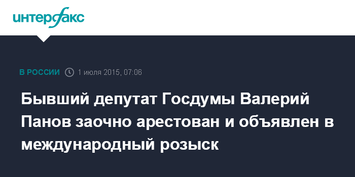 Бывший депутат Госдумы Валерий Панов заочно арестован и объявлен в международный розыск