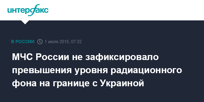 Москва. 1 июля. INTERFAX.RU - Радиационная обстановка в приграничных с Украиной российских регионах в норме, сообщили в пресс-службе МЧС России.