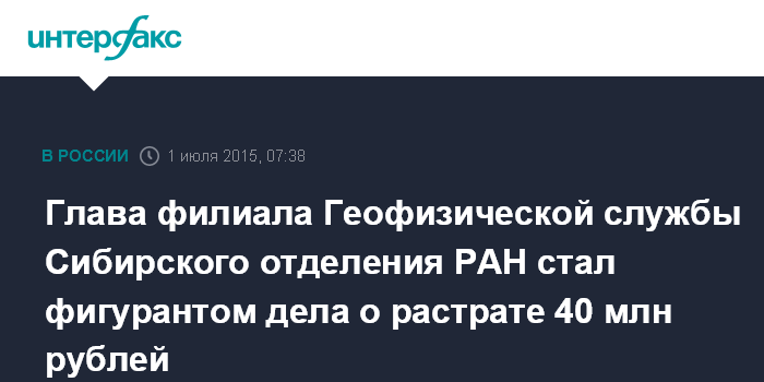 Глава филиала Геофизической службы Сибирского отделения РАН стал фигурантом дела о растрате 40 млн рублей