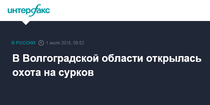 Москва. 1 июля. INTERFAX.RU - С 1 июля в Волгоградской области открывается охота на сурка степного (байбака), сообщает региональный Комитет природных ресурсов и экологии.