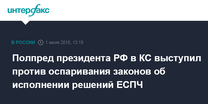 Москва. 1 июля. INTERFAX.RU - Полномочный представитель президента в Конституционном суде России Михаил Кротов выступил против предложения депутатов Госдумы признать не соответствующими Конституции ряд российских законов, которые предусматривают исполнение всех решений Европейского суда по правам человека.